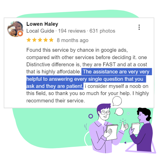 "Very efficient, helpful, professional and outstanding service. Everything ready in matter of hours instead of days! Their apps also easy to use, maybe just a little upgrade needed. Recommended 👍"